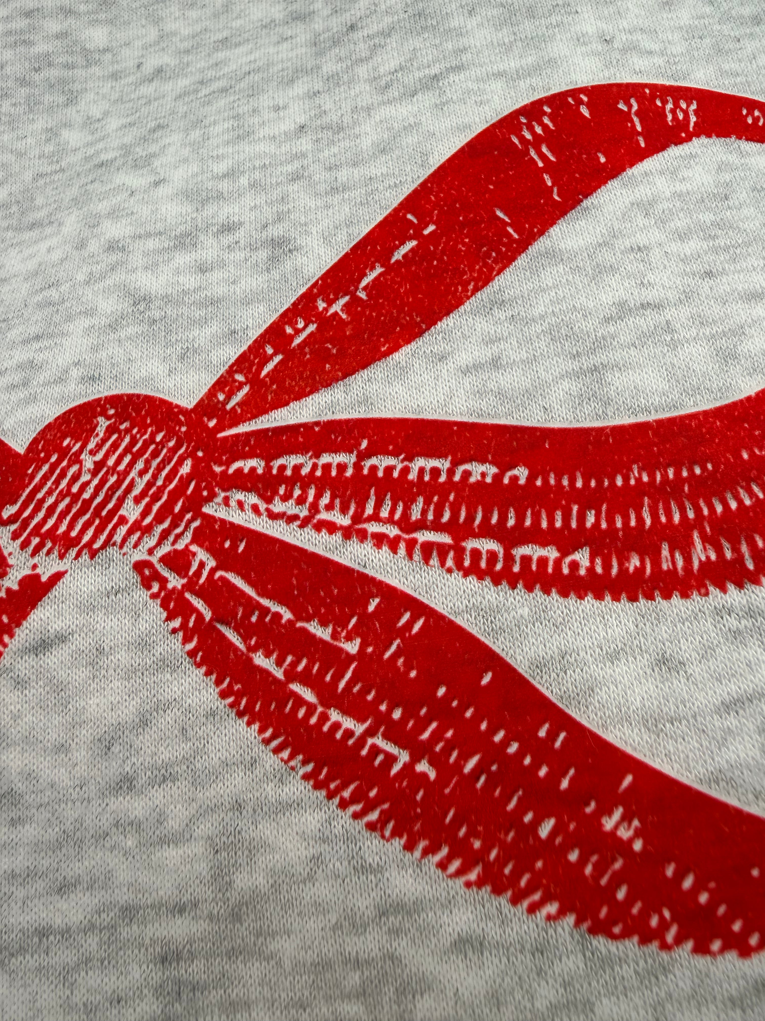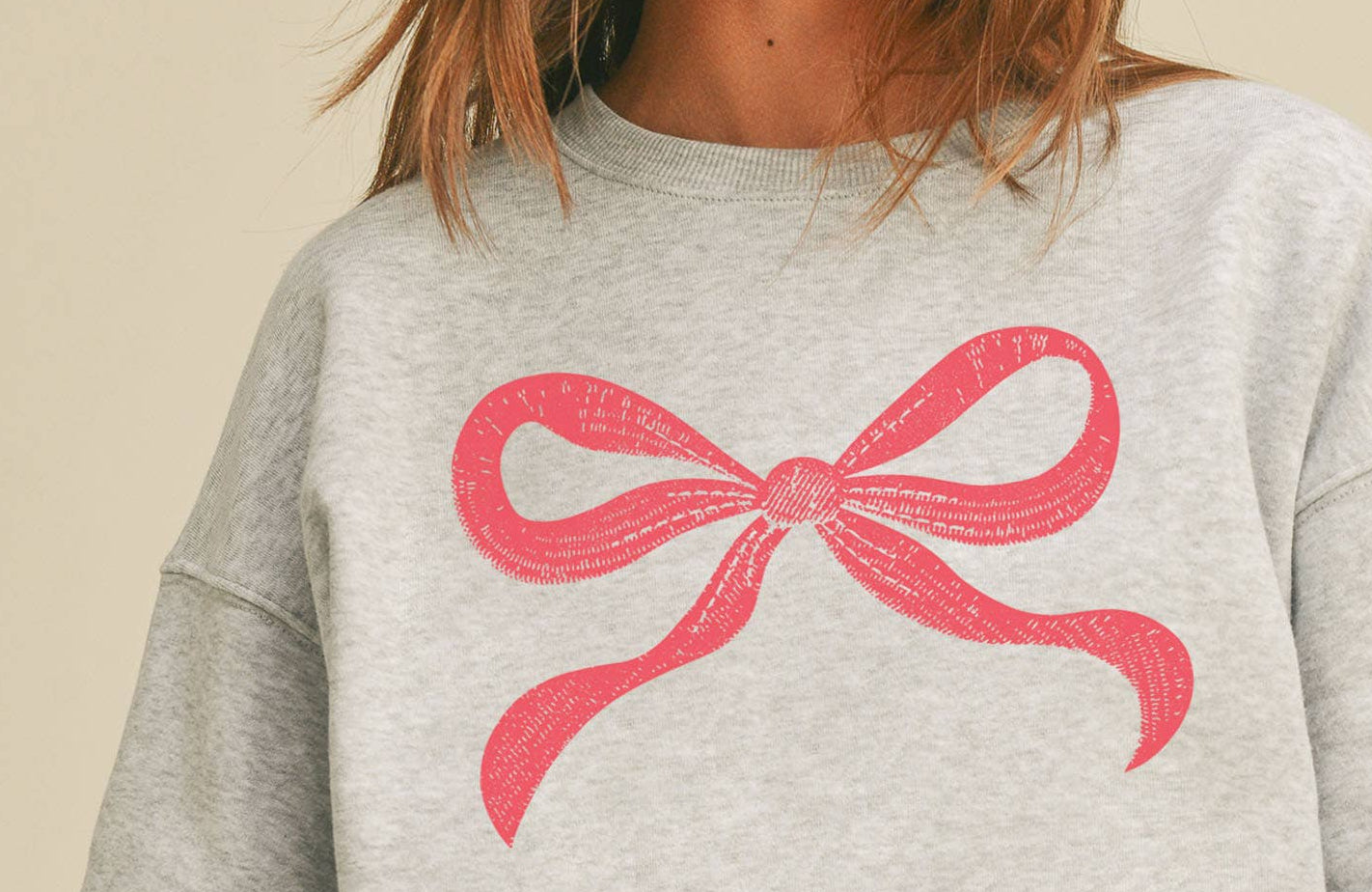 Light Grey Pink Bow Graphic Relaxed Fit Sweatshirt