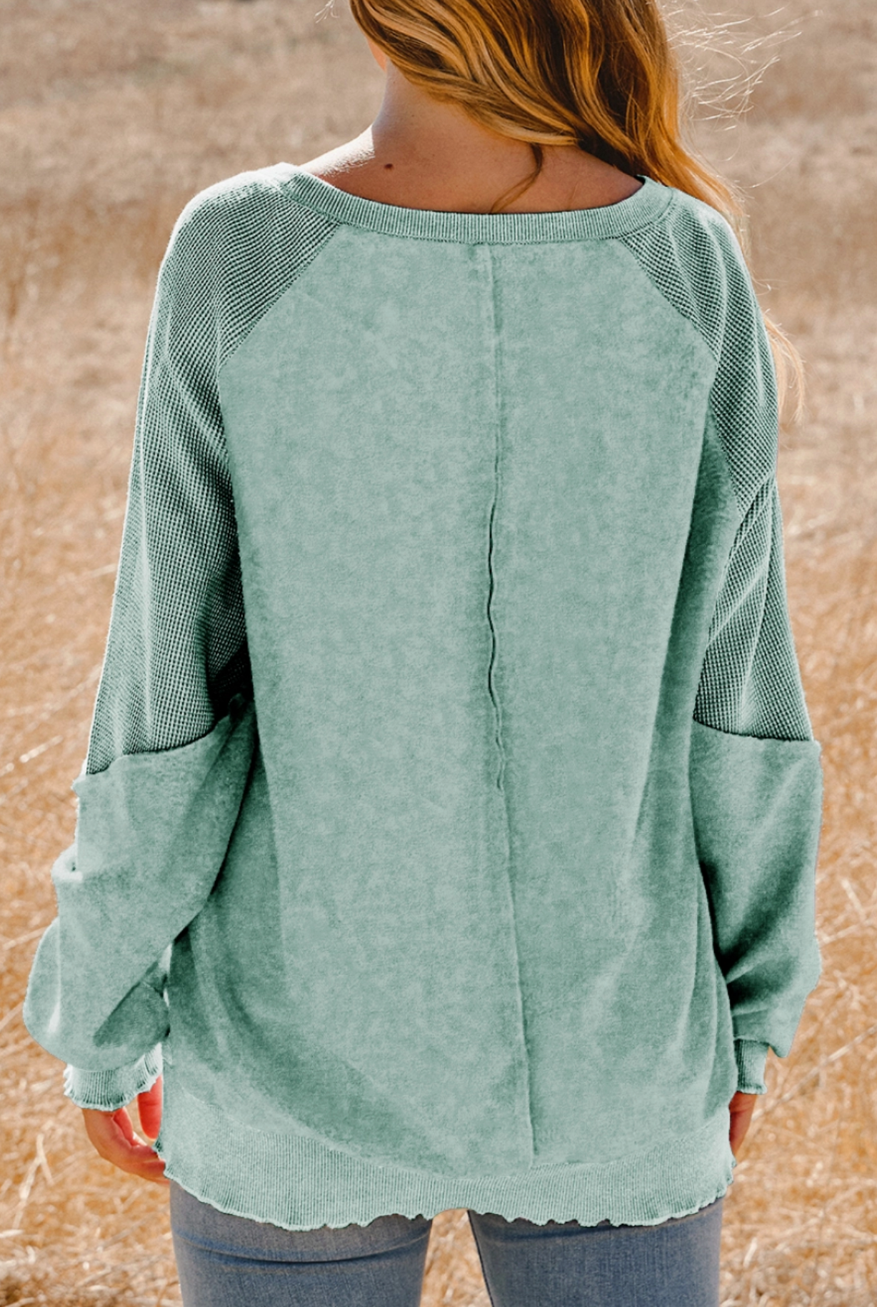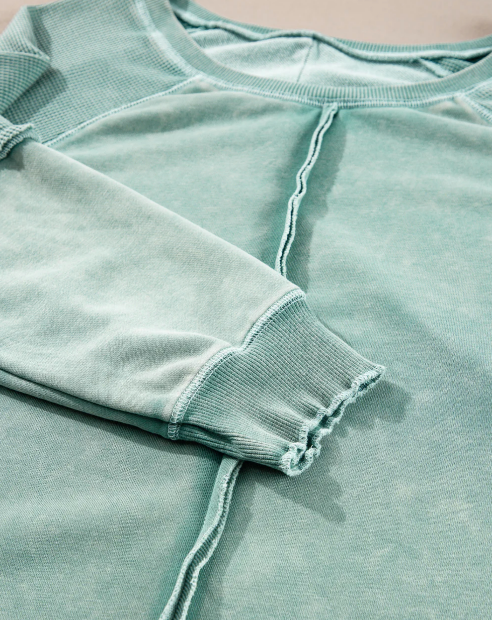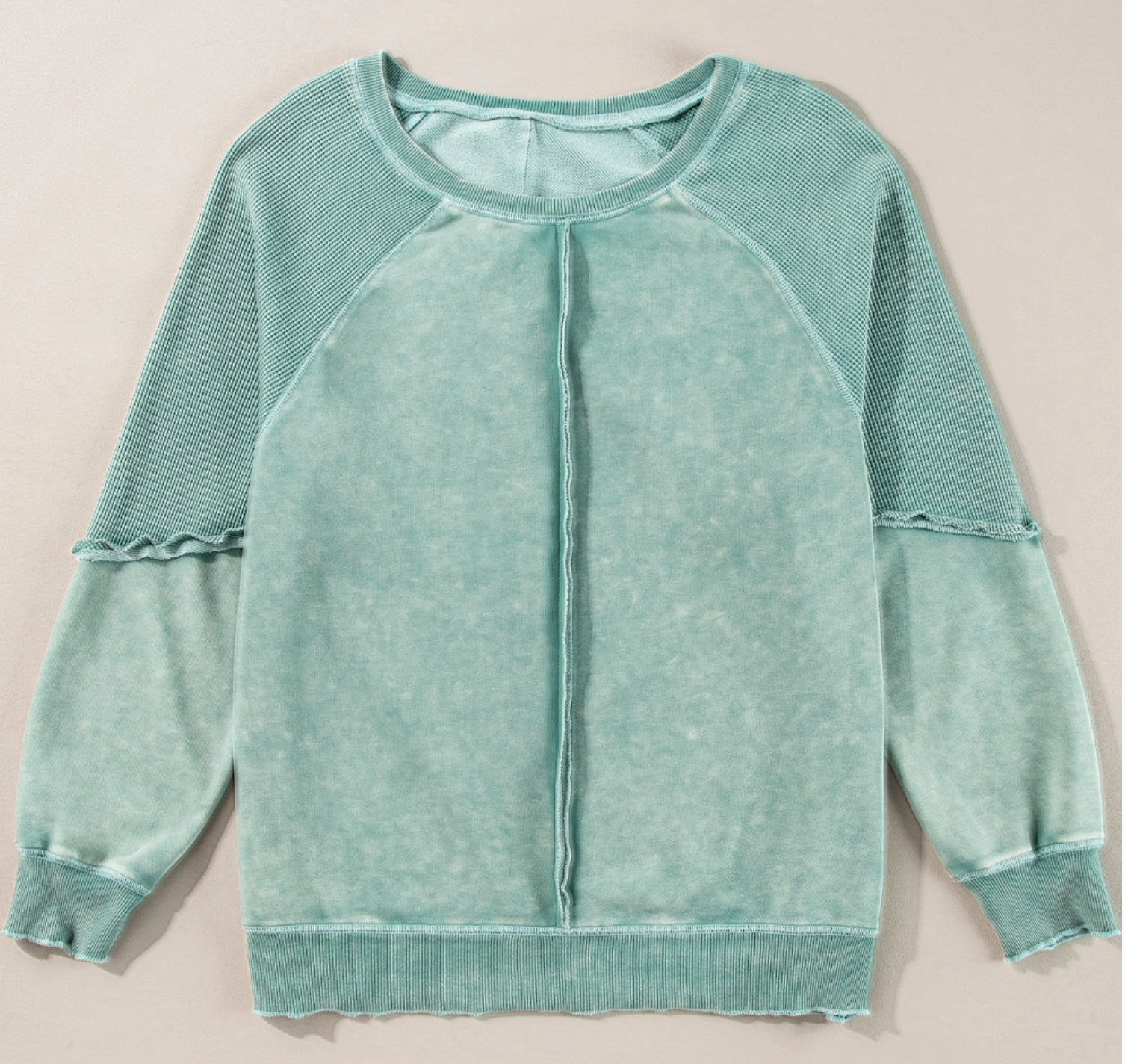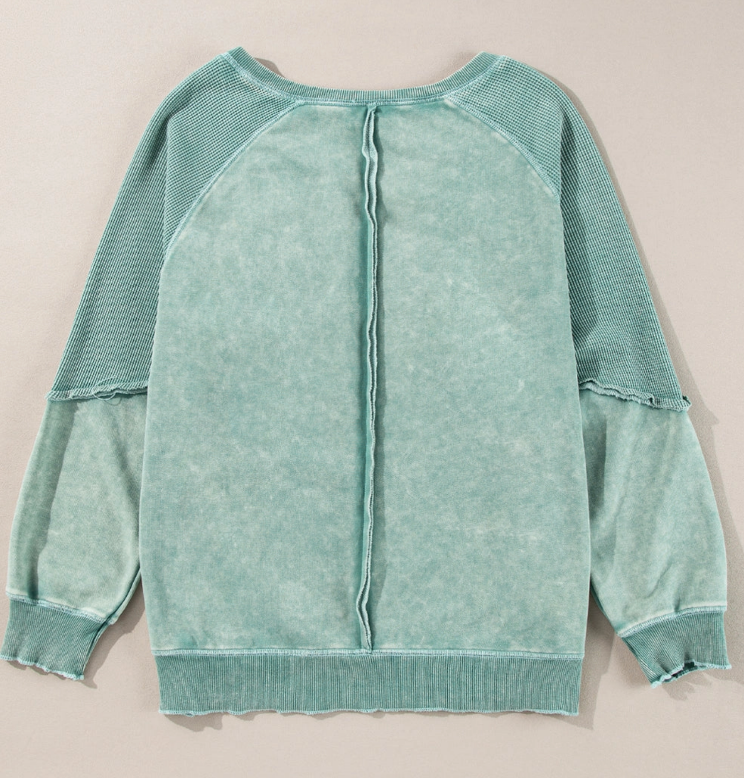 Elevate your casual closet with this textured waffle knit pullover, designed for that effortlessly laid-back, cool-girl vibe. With contrasting raglan sleeves, raw edge seam detail, and a relaxed oversized silhouette, this sweatshirt blends cozy comfort with street-ready style. The unique garment-washed finish adds a lived-in look you’ll love throwing on day after day.